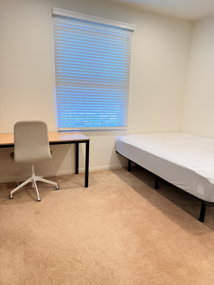 - 퀸사이즈 침대, 책상, 의자 구비