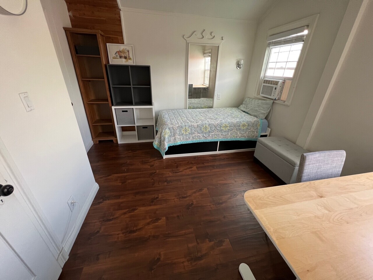 방안에 개인냉장고. 침대, 책상, 에어콘 있어요!