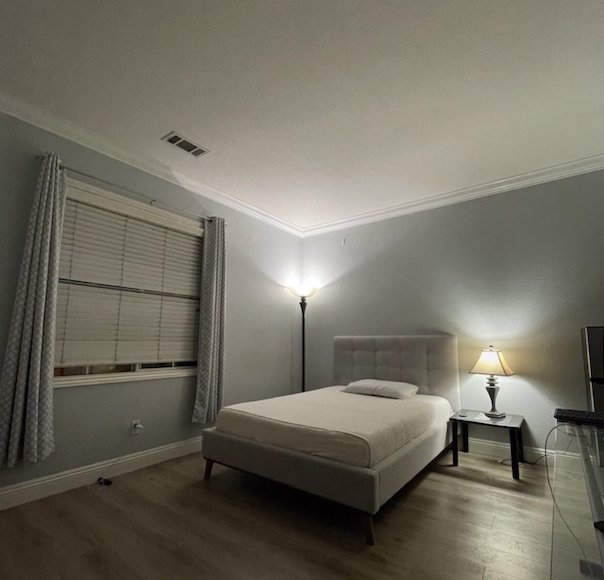 Lomita 지역 큰 방+혼자쓰는 방 안에있는 화장실 룸 렌트 합니다. 냉장고, 전자레인지, 옷방, 화장실, 큰침대, 책상, 의자, 조명, 탁자 구비되어 있습니다.