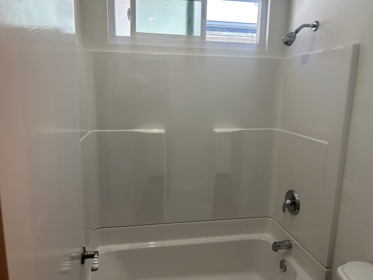 New paint, New kitchen cabinets, New bathtub and hardwood floor.