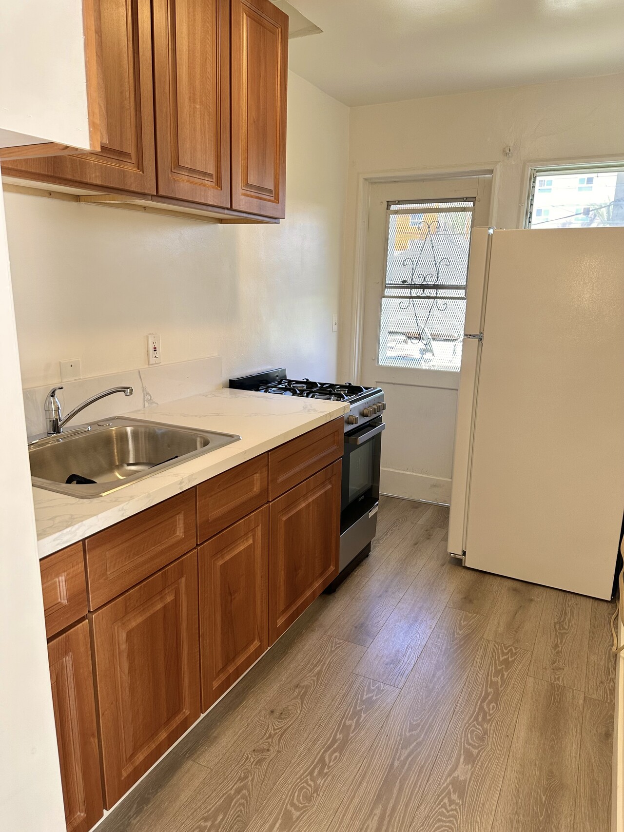 새 마루바닥과 새 주방기구