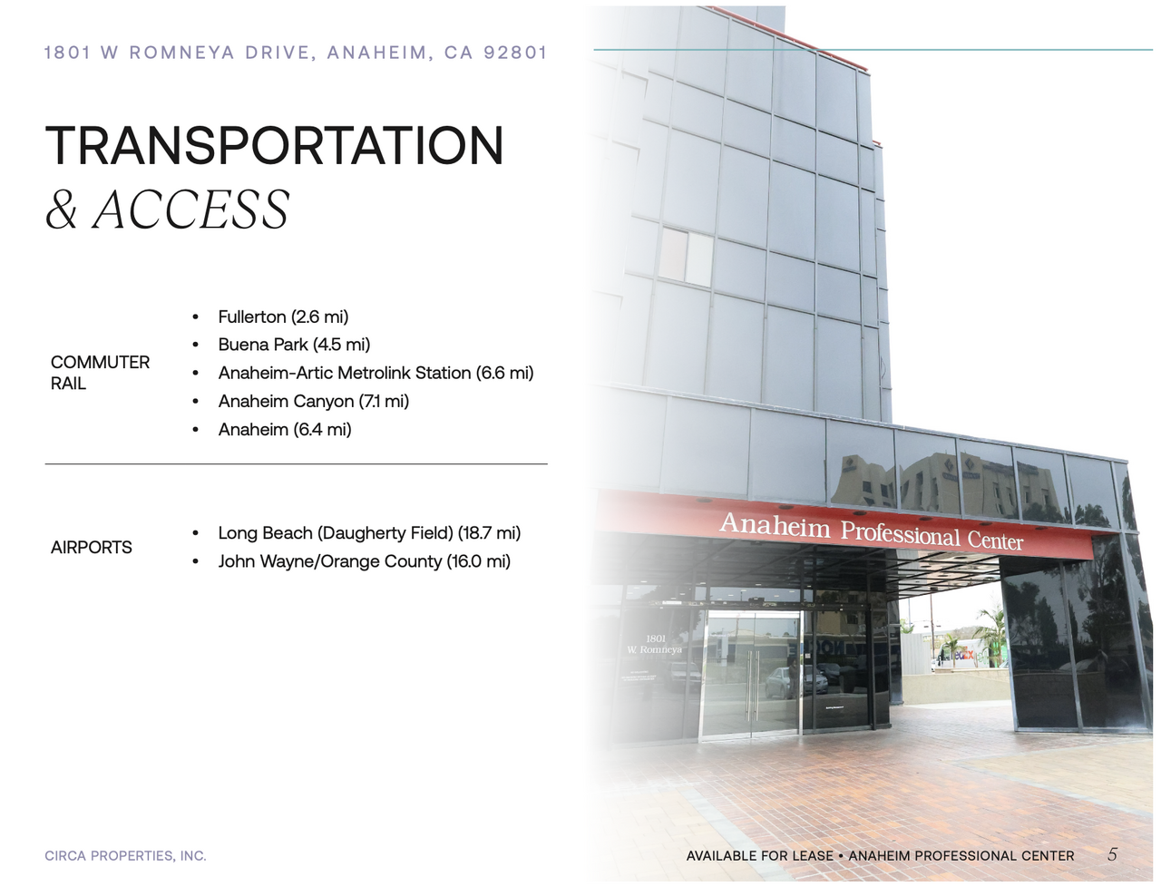 Anaheim Medical Office 또는 다른 용도로 사용 가능한사무실을 리스합니다.