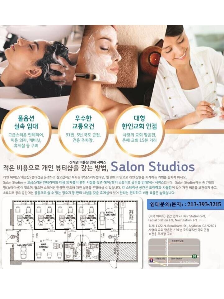 • 각 스튜디오마다 사업자 등록 가능 (월세 $1100으로 미용실 오너가 될 수 있습니다!)