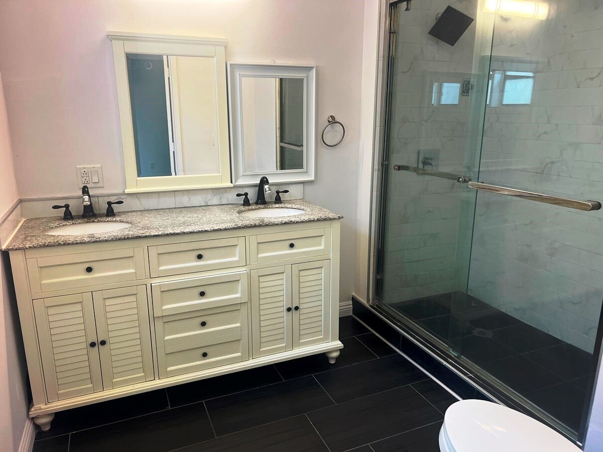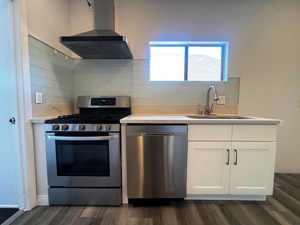 Freshly renovated 3 bedrooms, 2 full bath family home with rear yard/green space for your enjoyment, plus off-street parking for up to four vehicles available--remote-controlled detached garage included. Updated and clean-lined kitchen with new dishwasher, stainless steel stove & range hood, shaker-style white cabinetry, plenty of cabinet storage, spacious bedrooms, primary suite bathroom with double-sink vanity and walk-in shower, secondary bathroom features a bathtub plus adjacent shower area for multi-use, laminate wood and tile flooring, recessed lighting, open concept living & dining area, LG washer and dryer already installed, and space offers many other sought-after features. Near shops, restaurants, a pilates studio, public transit, near the 10 freeway, and overall in a very central location in Los Angeles.