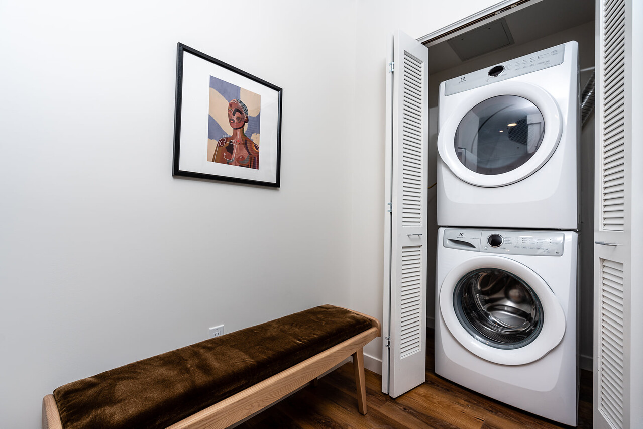 -스테인레스 스틸 주방 가전. -Full-size 드럼세탁기 및 건조기 in unit