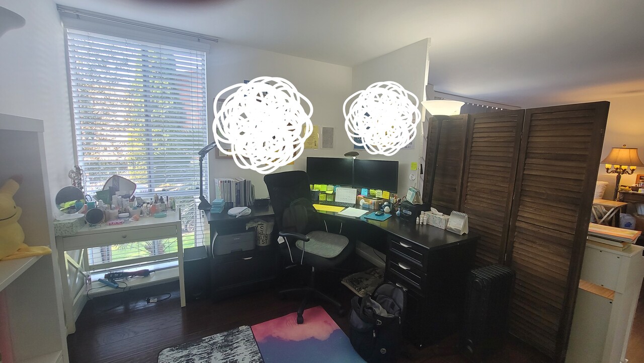 - 오피스용 큰 책상과 의자, 모티터 2개, 프린터기