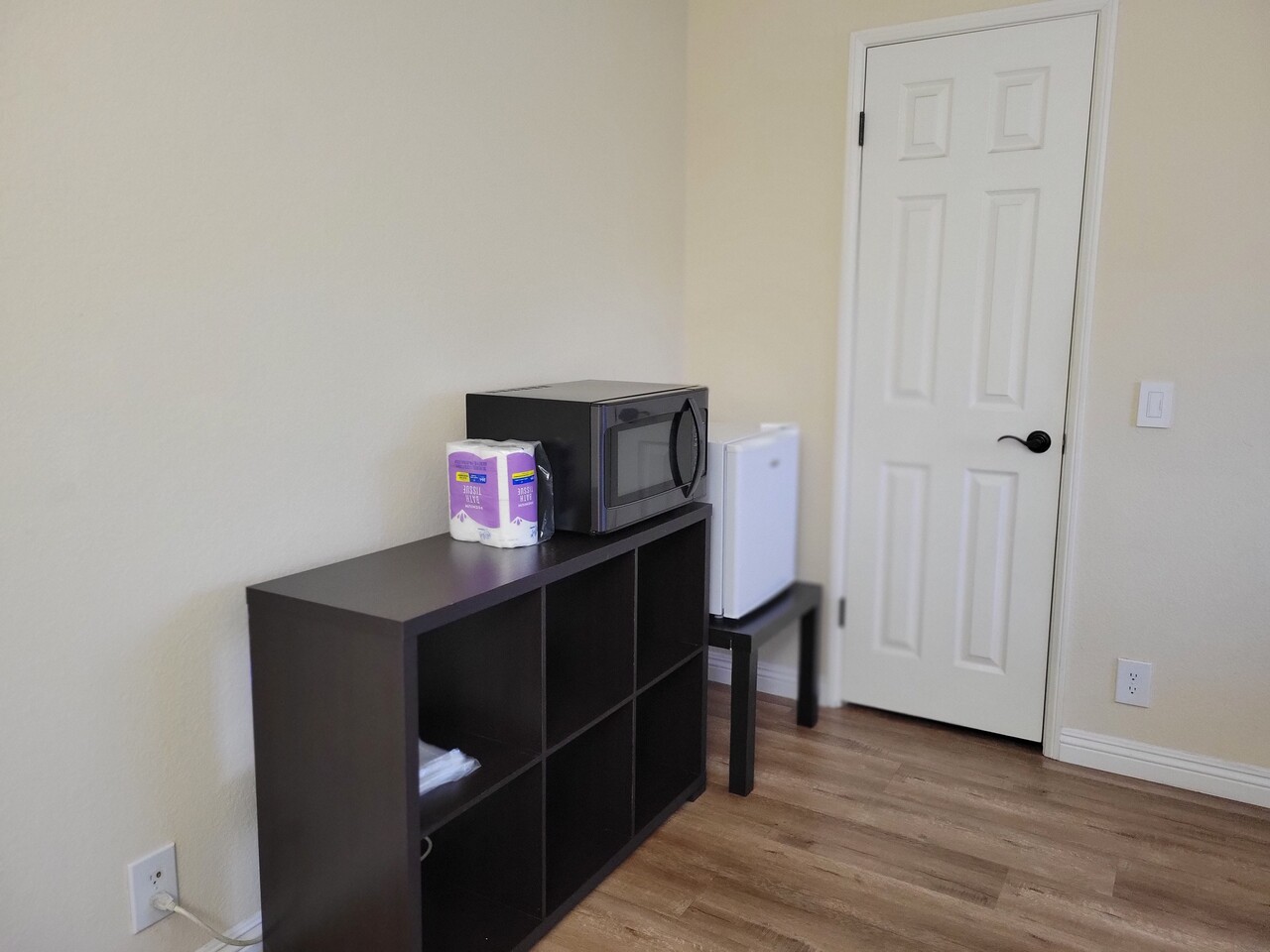방안에서 간단한 취사 가능하시도록  냉장고 전자 레인지 완비 돼어있습니다,