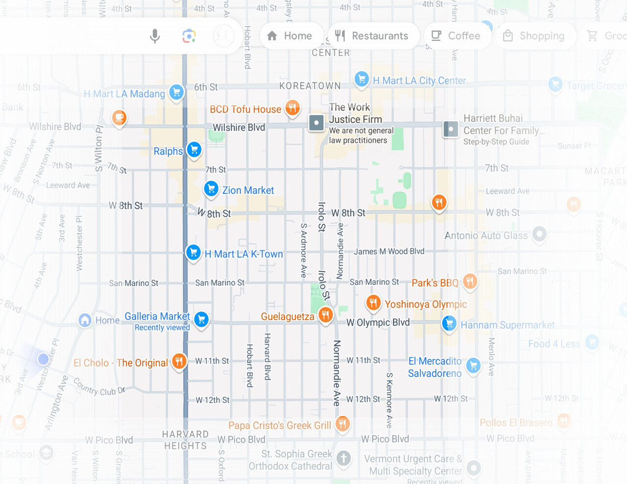 위치는 LA 한인타운이고 Customer Parking Lot은 어느 곳 보다도 나은 편입니다.