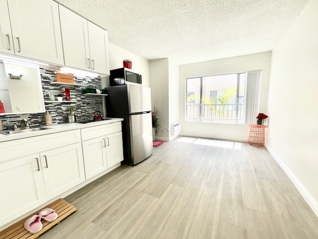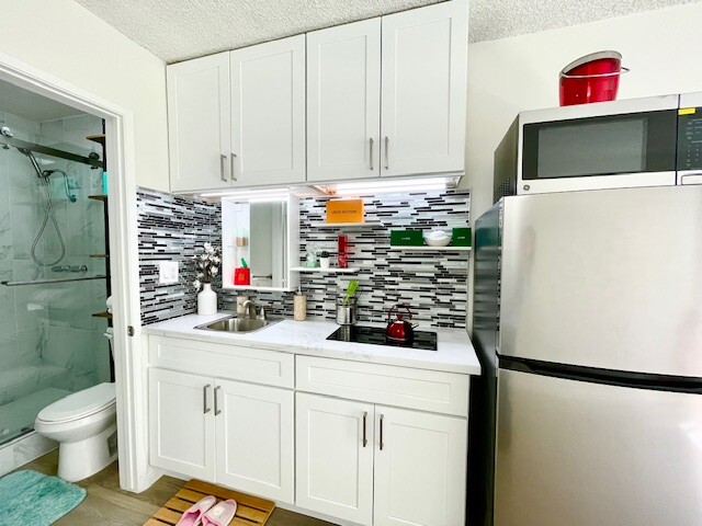- Mini Kitchen: 부엌에 Sink 와 , COOKTOP (Stove), Microwave, 냉장고 있습니다.