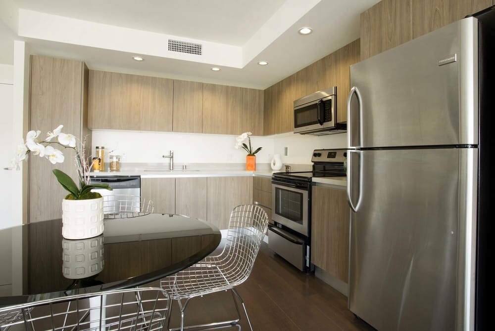 마루 바닥,카펫, 실내 개인세탁장,세탁기,드라이어,냉장고,스텐인레스 주방 키친 시설,