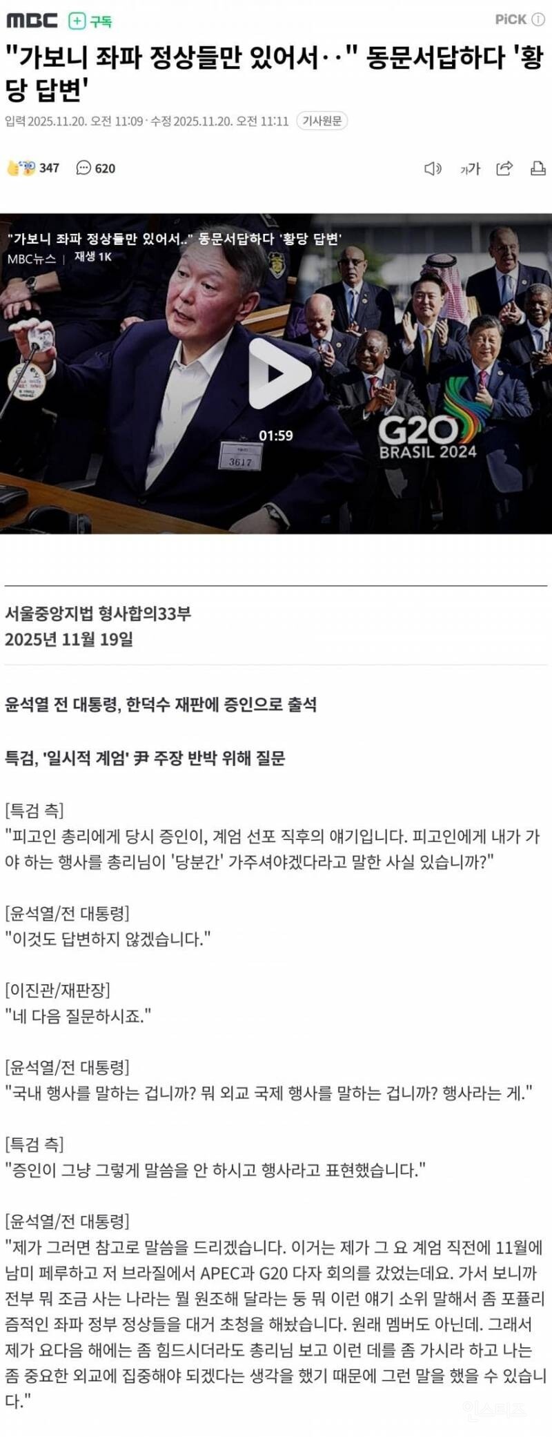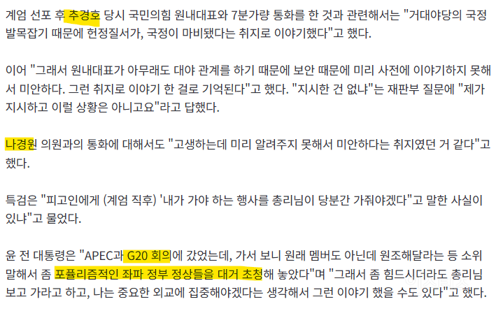 윤석렬, `G20 회의에 갔더니 좌파만 있어서 총리보고 가라고 했다..`