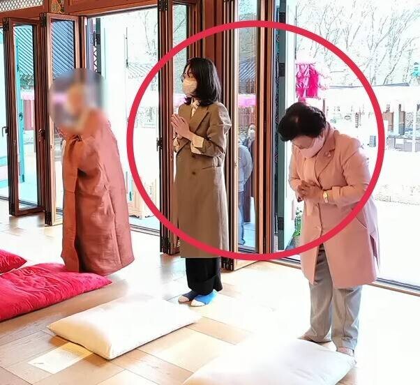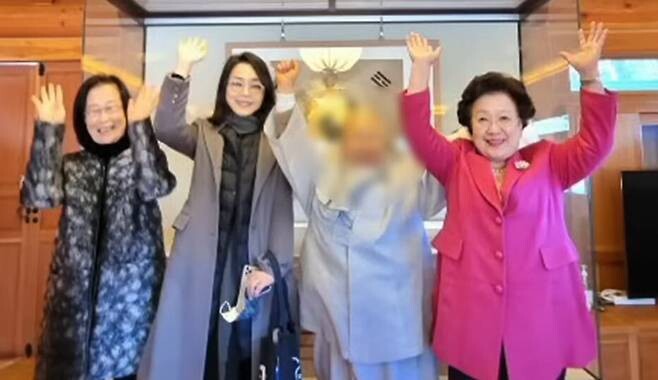 주진우 시사인 편집위원은 11일 유튜브 방송 ‘주기자 라이브’에서 김 여사와 이 전 위원장이 진관사 대웅전으로 추정되는 공간에서 합장하는 사진을 공개했다. 김 여사와 이 전 위원장, 그리고 김 여사에게 이 전 위원장을 소개한 정아무개 정진기언론문화재단 이사장이 나란히 선 모습이 사진에 담겼다. 정씨는 장대환 매경미디어그룹 회장의 부인으로, 정진기 매일경제신문 창업자의 딸이다.