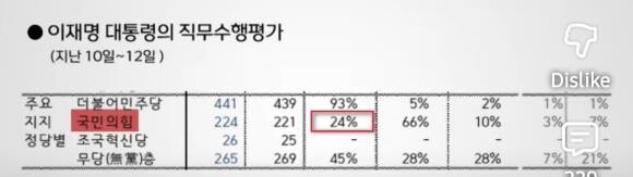 지지율 : 63%; 대구49%, 부울경 63%,국힘지지자 24% 잘하고 있다.
