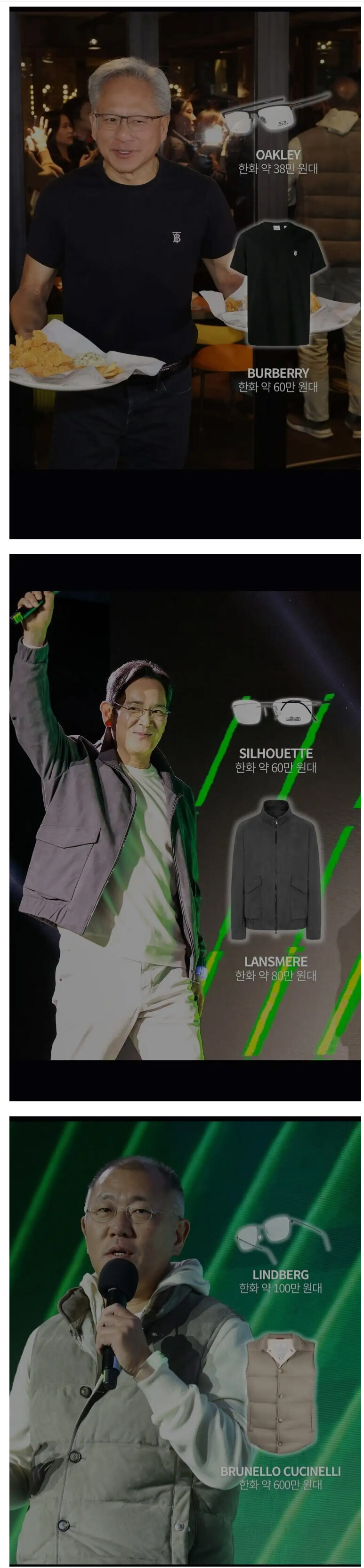 어제 치맥 회동에서 젠슨황, 이재용, 정의선이 입은 의류 가격