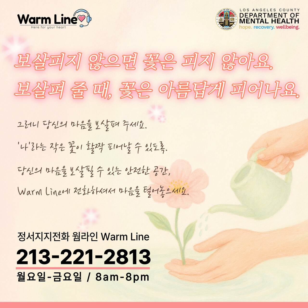 Warm Line은 LA 카운티 정신건강국과 함께 합니다.