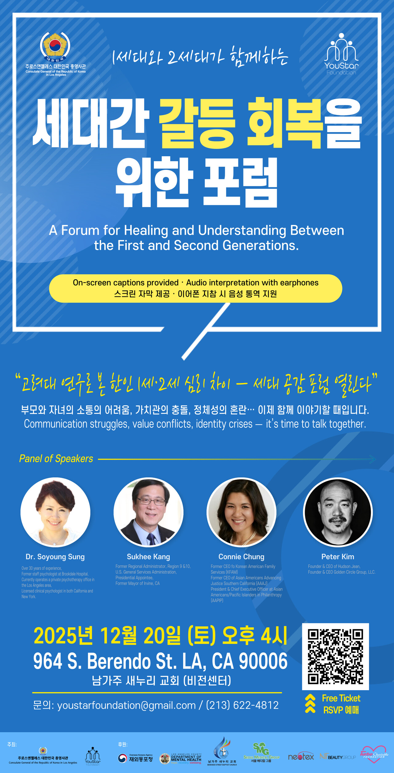 LA 한인사회 세대간 갈등을 데이터와 대화로 함께 풀어보는 공익 포럼이 열립니다.