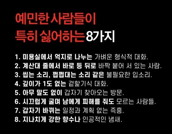 이 8 가지는 예민 하지 않아도 누구나 싫어 하는 것 이네요.