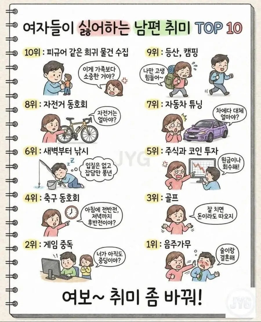 여자들이 싫어하는 남편 취미 TOP 10