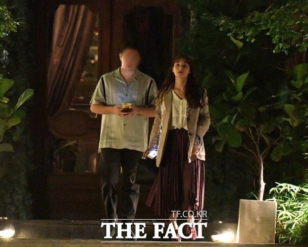 박규리와 송자호 큐레이터가 주변 시선을 크게 의식하지 않고 데이트를 하고 있다. /남윤호 기자