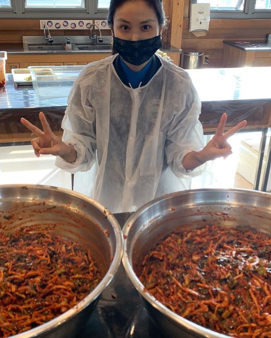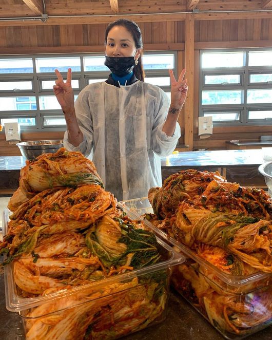 공개된 사진 속에는 김장을 마치고 직접 담근 김치를 앞에 두고 인증샷을 찍는 고소영의 모습이 담겨 있다. 밝은 미소를 짓고 있는 고소영의 미소에서는 김장을 끝낸 후련함과 뿌듯함이 엿보인다.