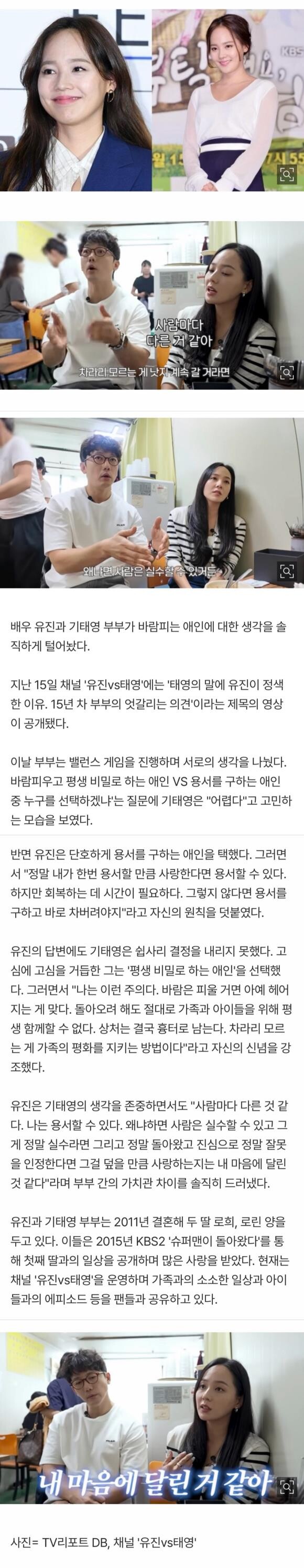 기태영` 유진 "바람피워도 용서 가능, 사람은 실수할 수 있어"