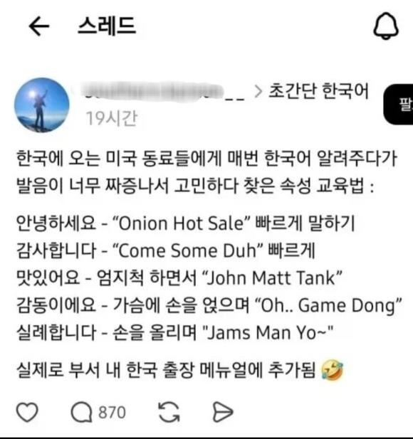 미국인에게 속성으로 한국어 가르치는 방법 ㅋㅋㅋ