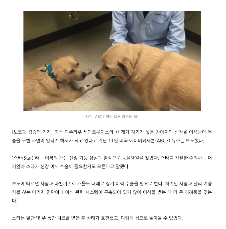 강아지 '딸' 신장 이식받아 목숨 구한 어미개