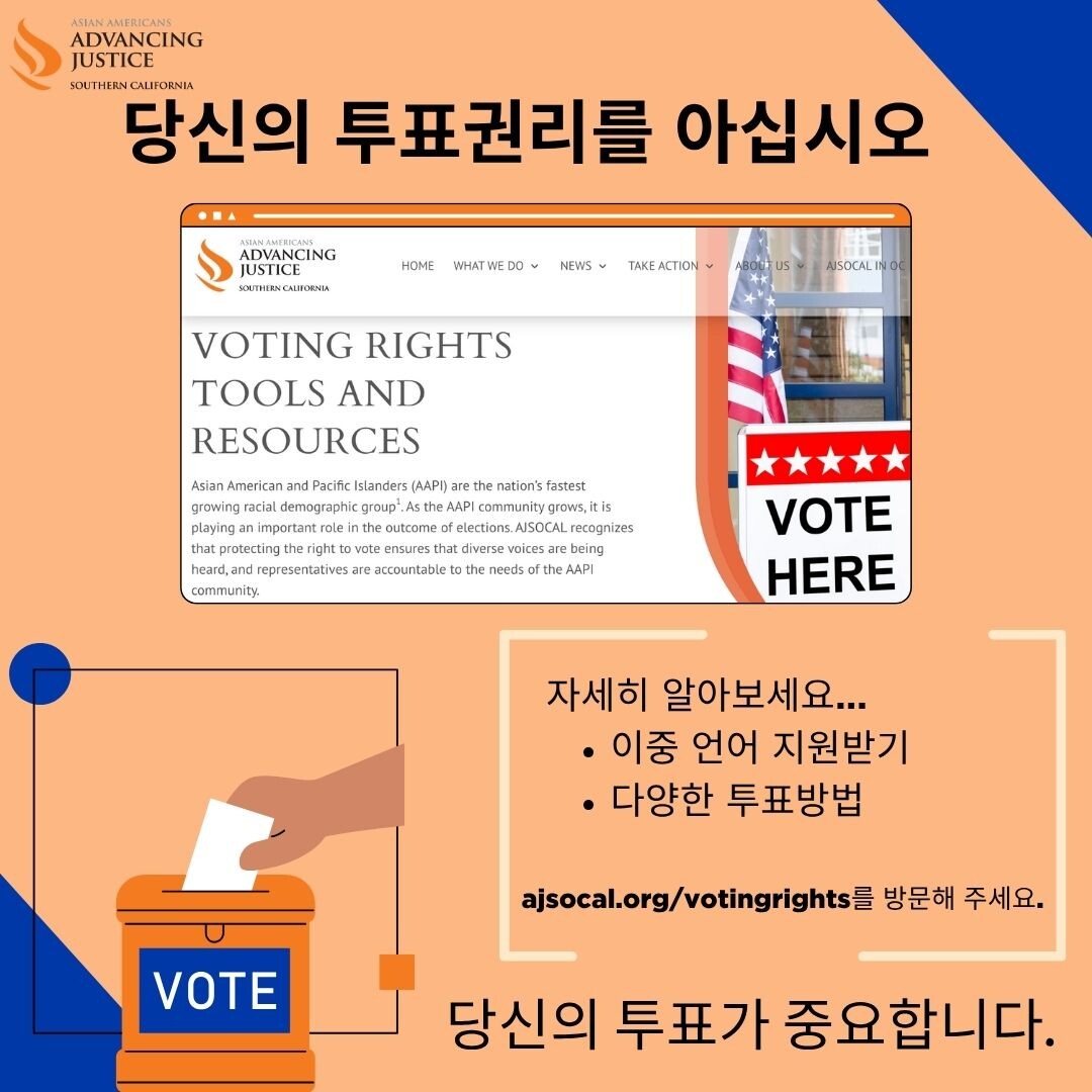 AJSOCAL이 2025년 특별선거를 대비해 아시아계 미국인 유권자들이 올바른 정보를 얻고, 보호받으며, 자신 있게 투표할 수 있도록 돕는 ‘투표권 도구 및 자료 허브(Voting Rights Tools & Resource Hub)’를 출시했습니다.