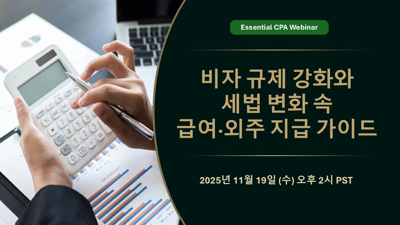 [Essential CPA Webinar] Payroll Tax & 외주 지급 실무 가이드 (11/19 수)