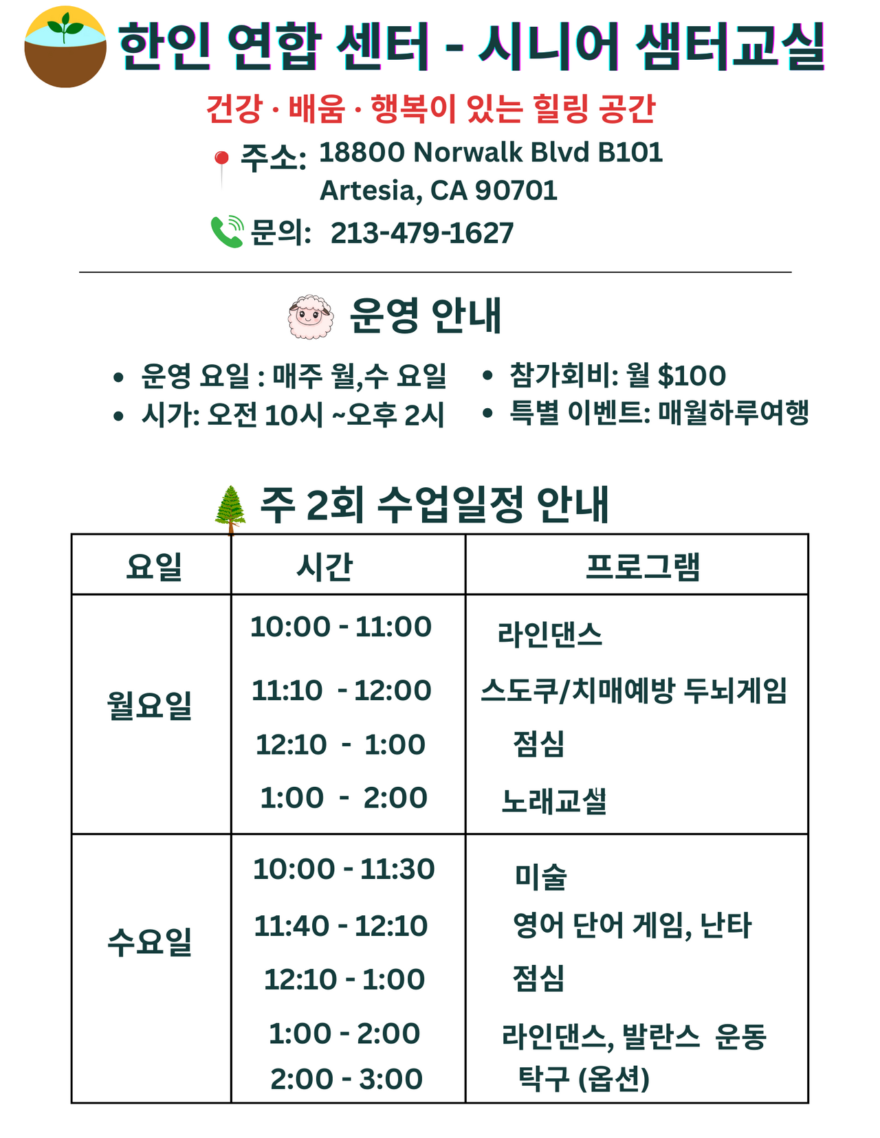 2026년 새롭게 시작하는 시니어 심터교실 수업 일정표 보시고 참관해보세요