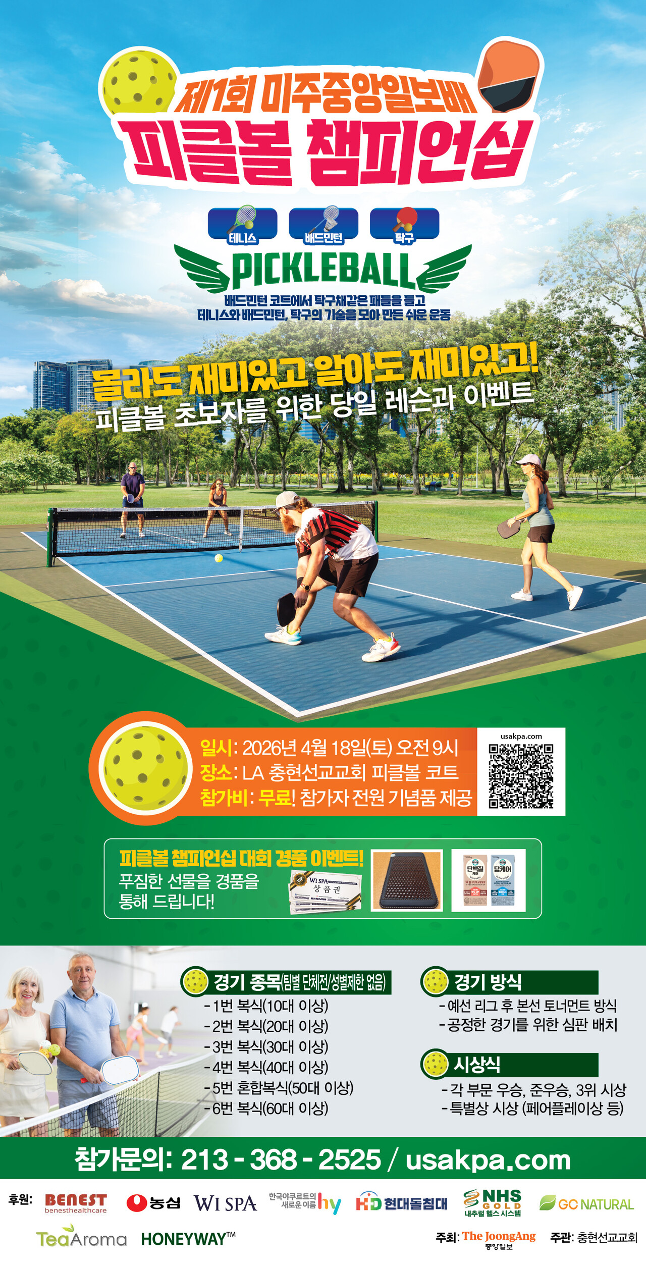 제1회 중앙일보배 피클볼 대회가 4월18일 충현선교교회 피클볼 코트(실외 6개, 실내2개)에서 치러 집니다.