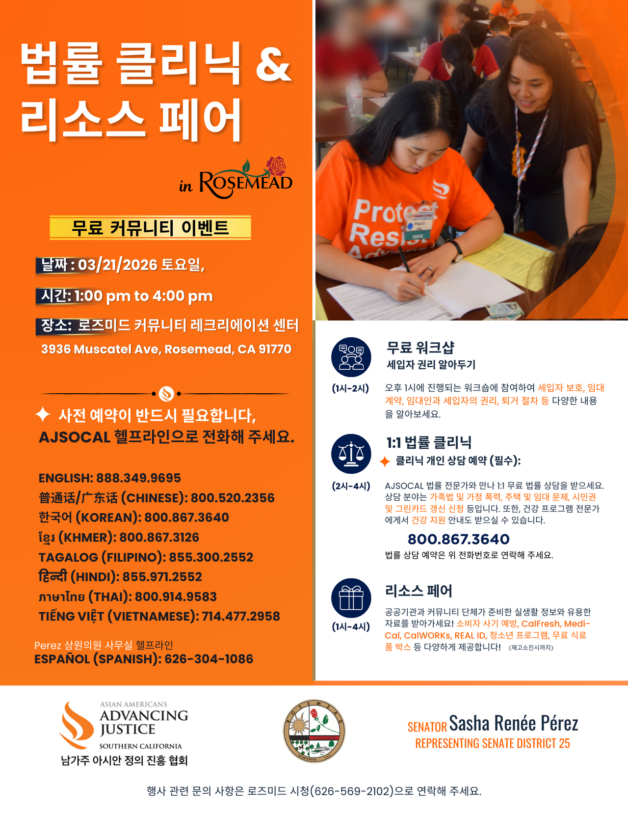‘무료 법률 클리닉 및 리소스 페어’ 행사를 개최합니다.