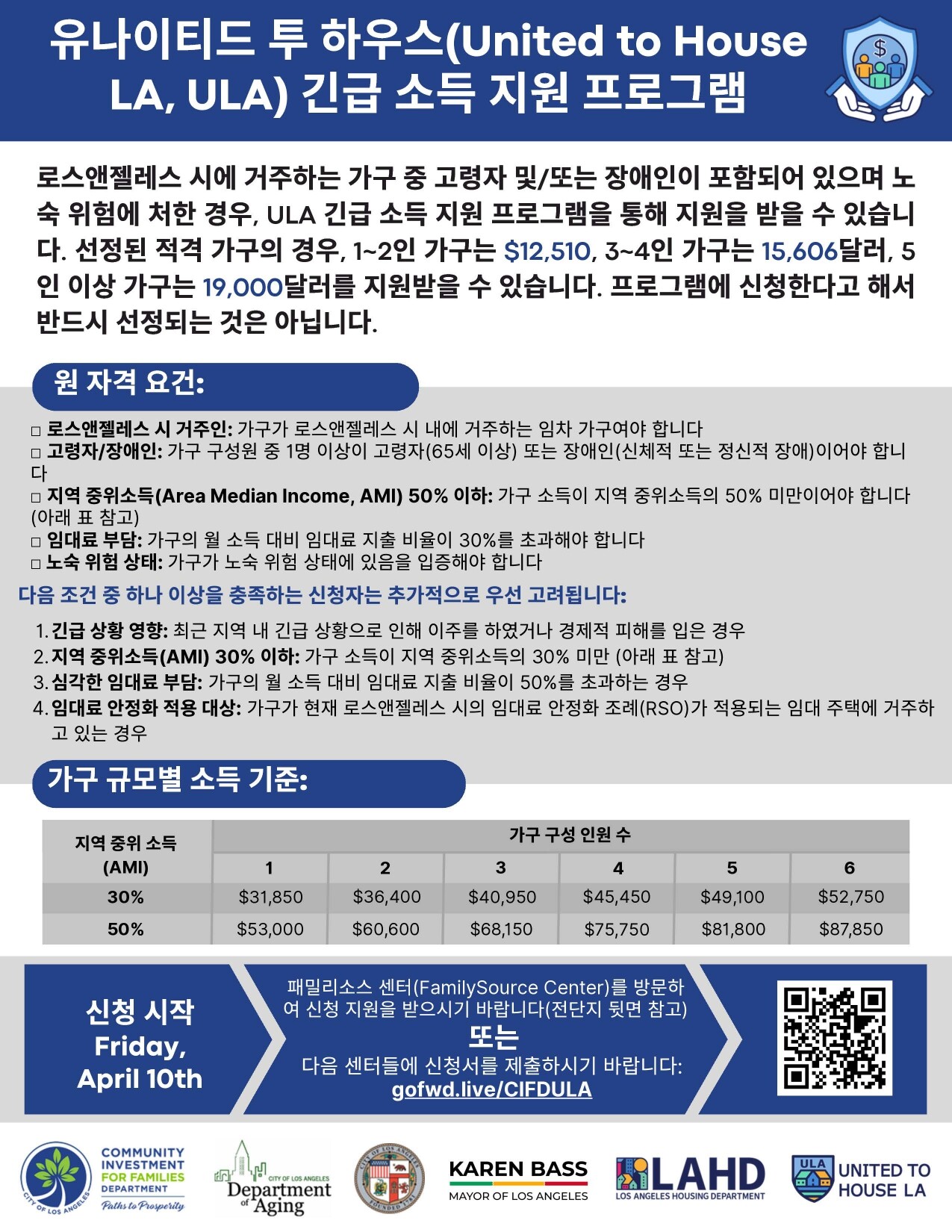 City of Los Angeles Community Investment for Families Department에서 United to House LA Emergency Income Support Program (ULA ISP) 신청을 시작합니다!