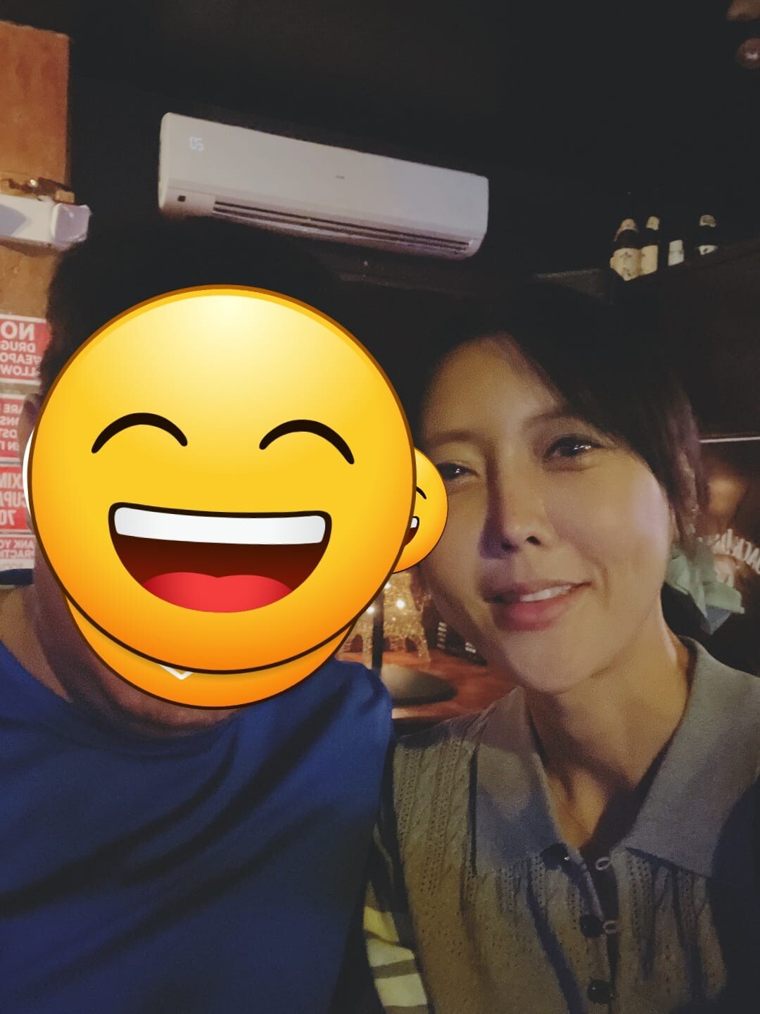 자기 사진은 스티커로 가리고 와이프 사진을 주었습니다.