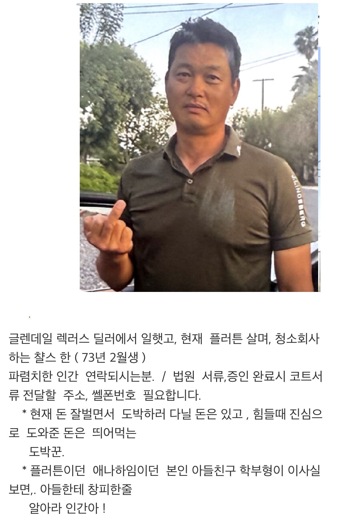 이혼과정에서 저의 대한 불만을 가진 사람이 나에 대한 거짓으로 여기에 글을 올렸습니다.