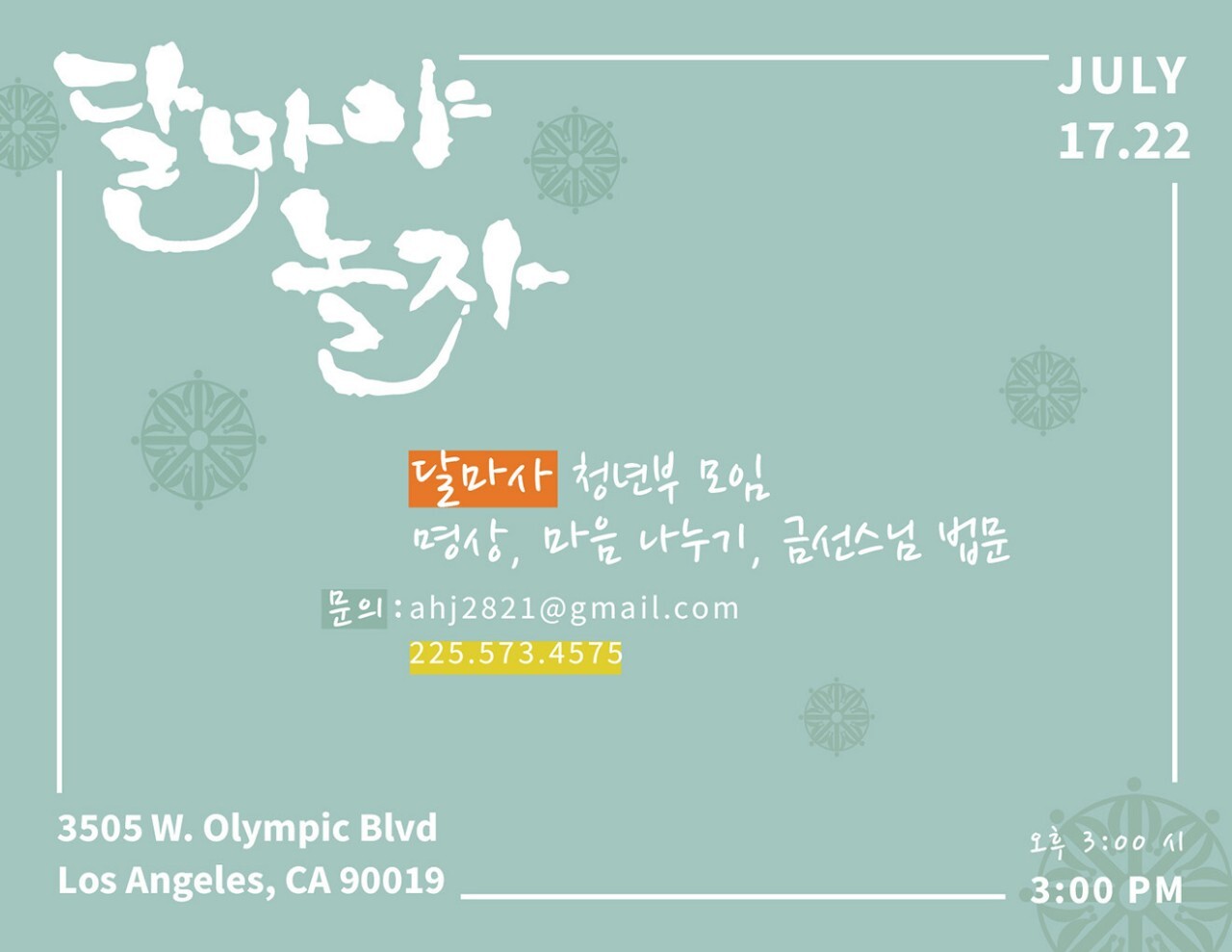 청년 불자들 모임을 달마사에서 진행합니다. 관심 있는 분들은 연락 주세요.