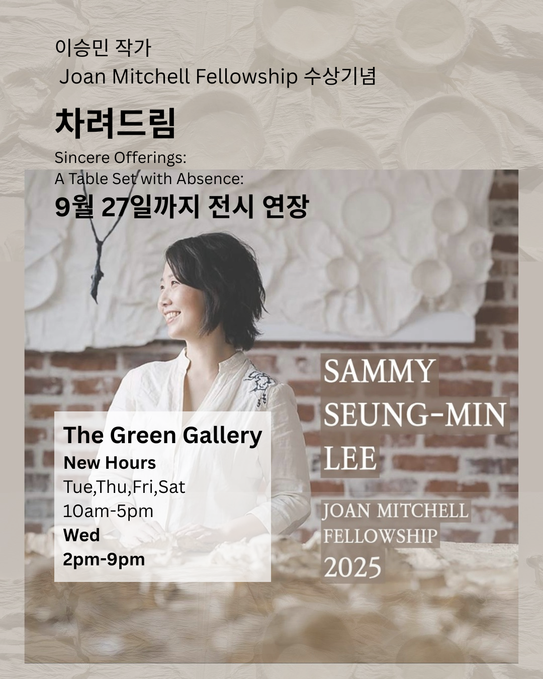 현재 더그린 갤러리 (링크주소 https://www.instagram.com/thegreen_oc/ )에서 개인전을 하고 계신 이승민 작가님이 지난 8월 13일 Joan Mitchell Fellowship을 받게 되셨습니다.