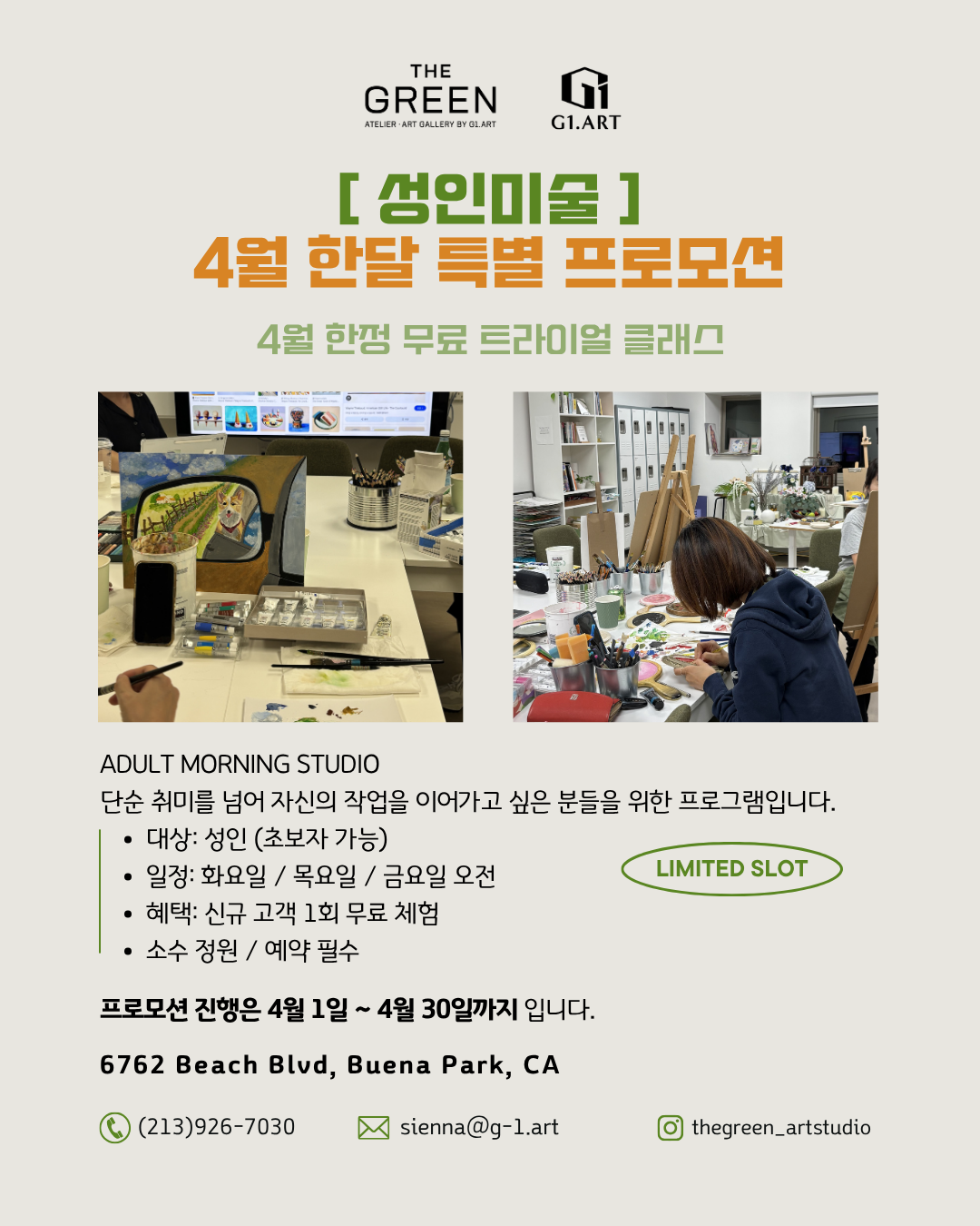 문의 및 신청은 https://www.instagram.com/thegreen_oc/ 프로필 링크로 부탁드립니다.