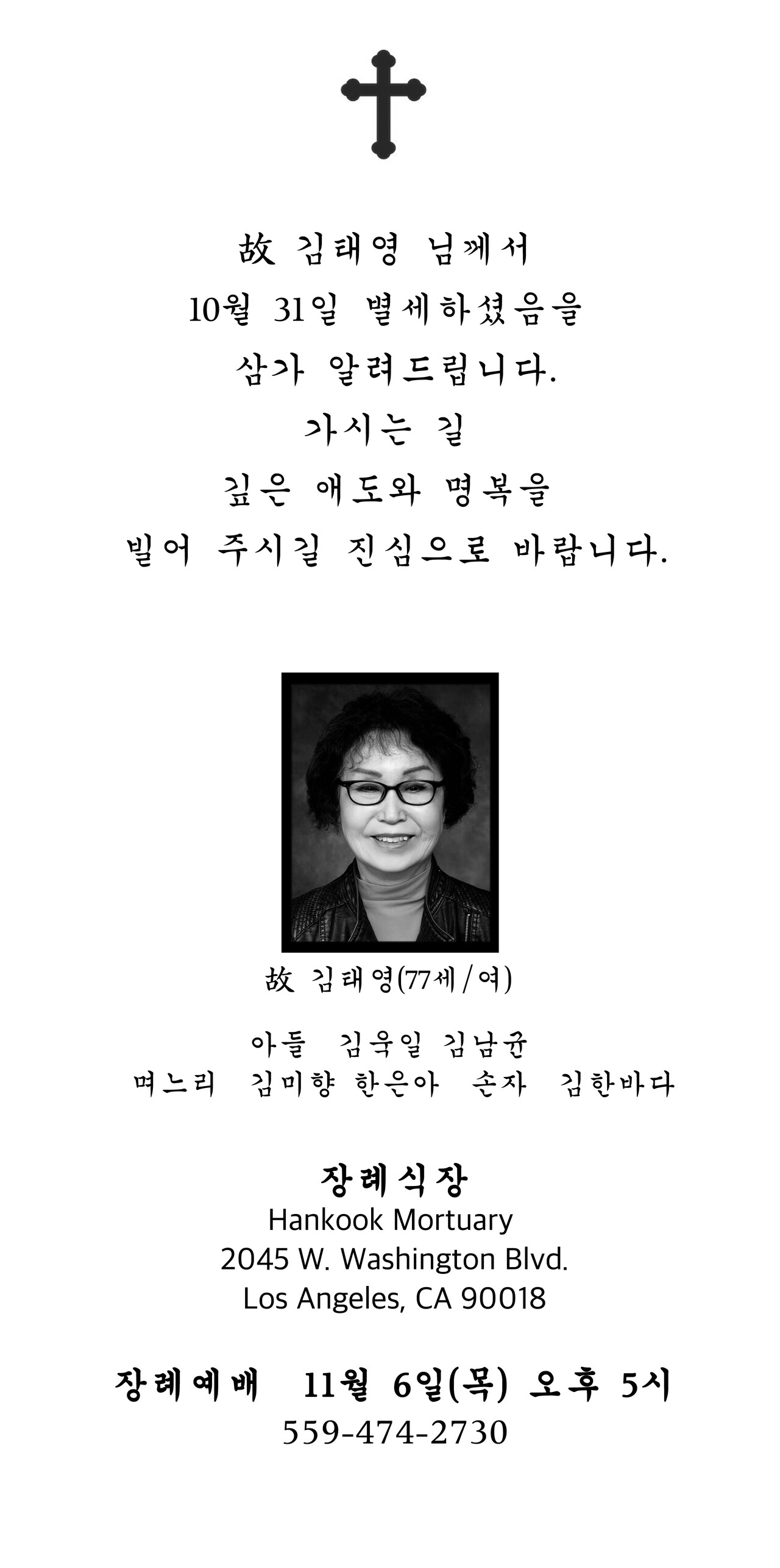 사랑하는 어머니 김태영 집사께서 별세 하셨습니다.