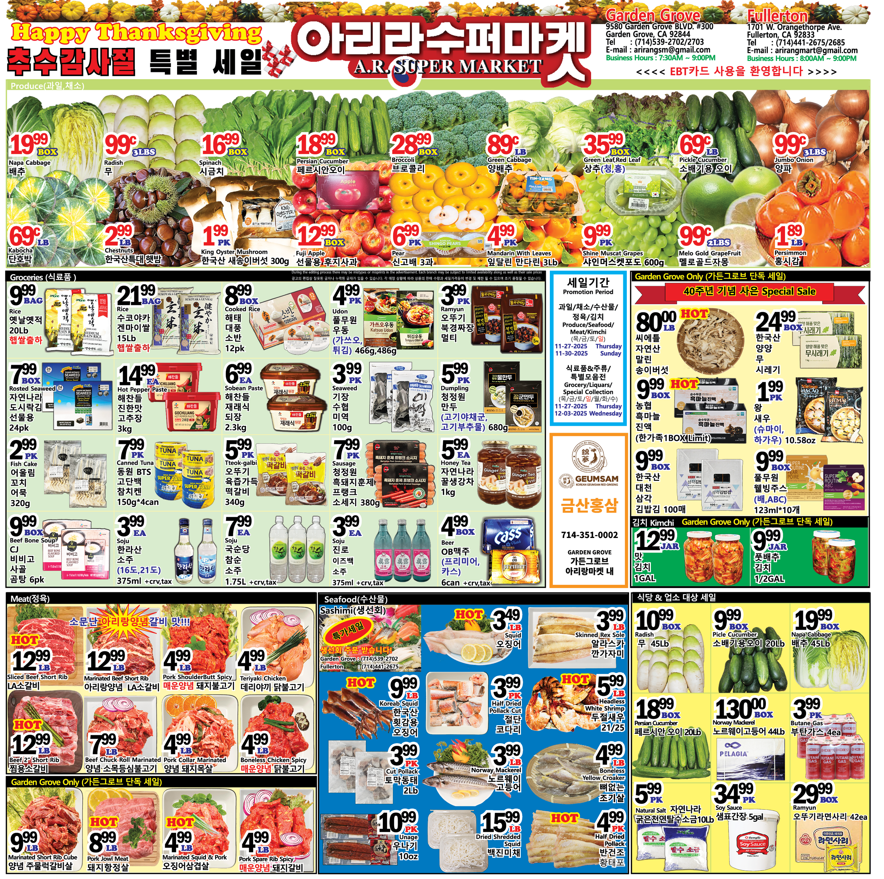 • 더 많은 정보를 원하시면 아래에 있는 아리랑수퍼마켓 세일정보 홈페이지를 방문하시기 바랍니니다.