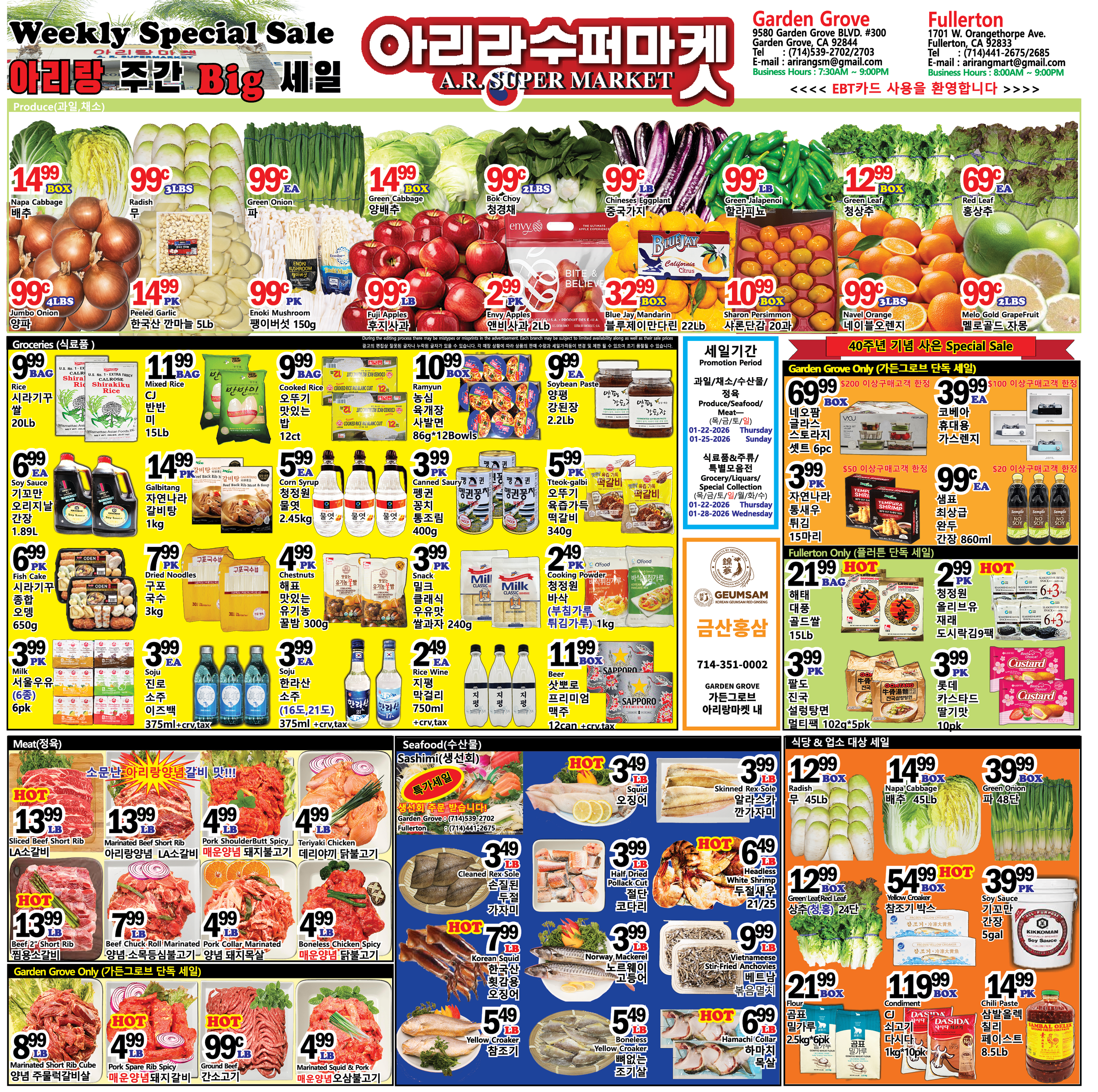 DISCLAIMERS: 이 전단지는 해당 마켓이 업로드한 것으로 내용에 대한 모든 책임은 해당마켓에 있으며, 이 내용을 본 후 결정한 판단에 대한 책임은 게시물을 본 이용자 본인에게 있습니다. 라디오코리아는 이 글에 대한 내용을 보증하지 않으며, 이 정보를 사용하여 발생하는 결과에 대하여 어떠한 책임도 지지 않습니다. 라디오코리아의 모든 게시물에 대해 게시자 동의없이 게시물의 전부 또는 일부를 수정 · 복제 · 배포 · 전송 등의 행위는 게시자의 권리를 침해하는 것으로 원칙적으로 금합니다. 이를 무시하고 무단으로 수정 · 복제 · 배포 · 전송하는 경우 저작재산권 침해의 이유로 법적조치를 통해 민, 형사상의 책임을 물을 수 있습니다. This listing is posted by the market and all the responsibility for the contents lies with the market. The user is responsible for the judgments made after viewing the contents. Radio Korea does not endorse the contents of this article and assumes no responsibility got the consequences of using the information. In principle, all posts in Radio Korea are prohibited from modifying, copying, distributing, and transmitting all or part of the posts without the consent of the publisher. Any modification, duplication, distribution, or transmission without prior permission can subject you to civil and criminal liability.