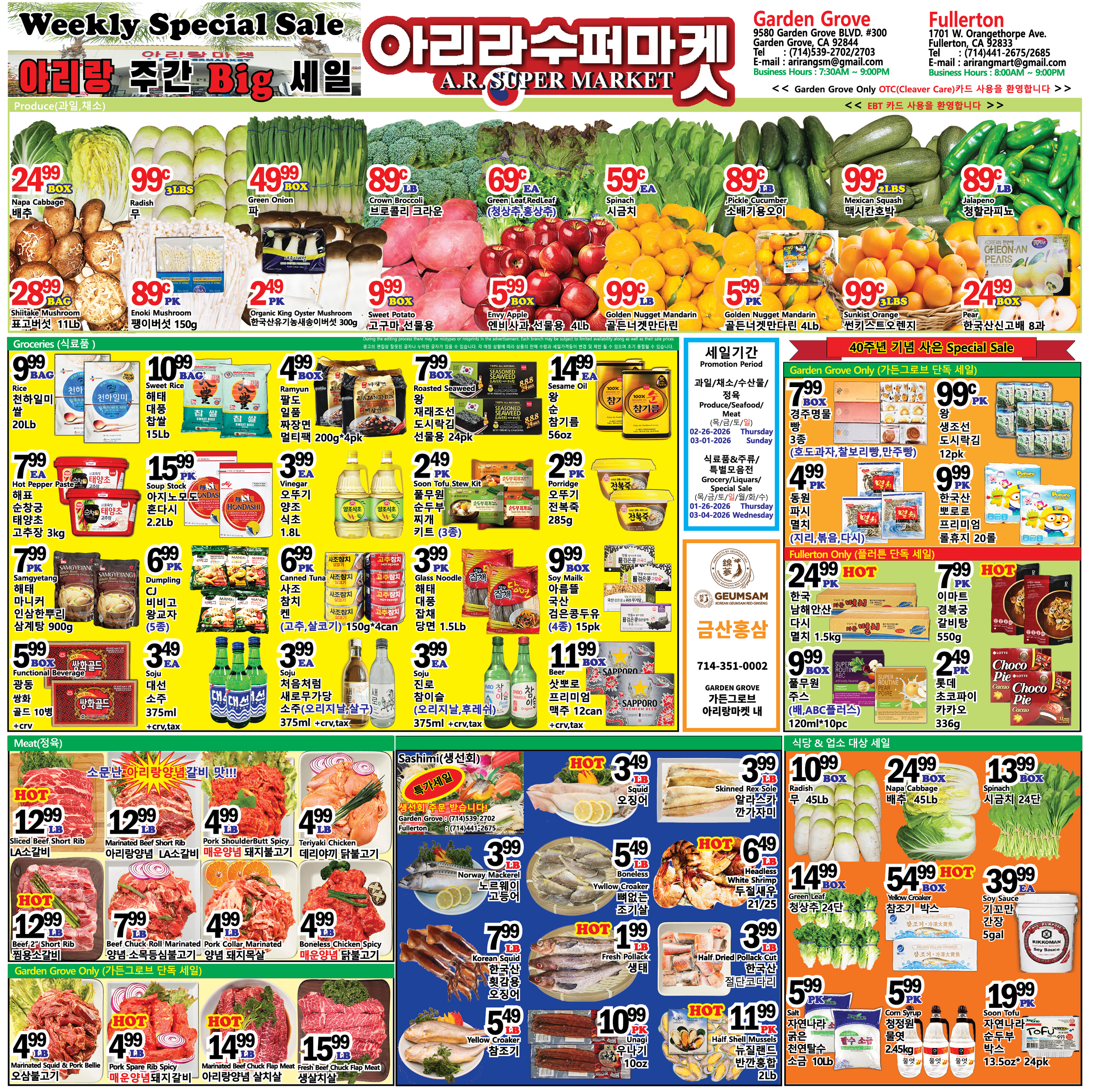 • 더 많은 정보를 원하시면 아래에 있는 아리랑수퍼마켓 세일정보 홈페이지를 방문하시기 바랍니니다.