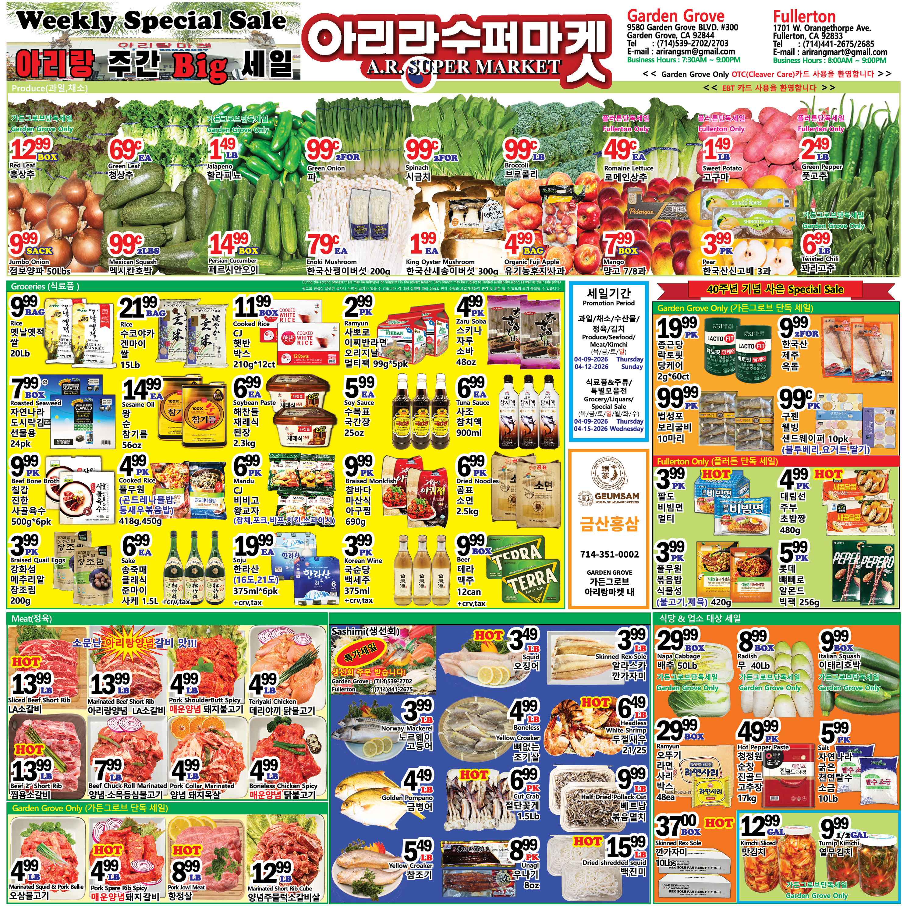 • 더 많은 정보를 원하시면 아래에 있는 아리랑수퍼마켓 세일정보 홈페이지를 방문하시기 바랍니니다.