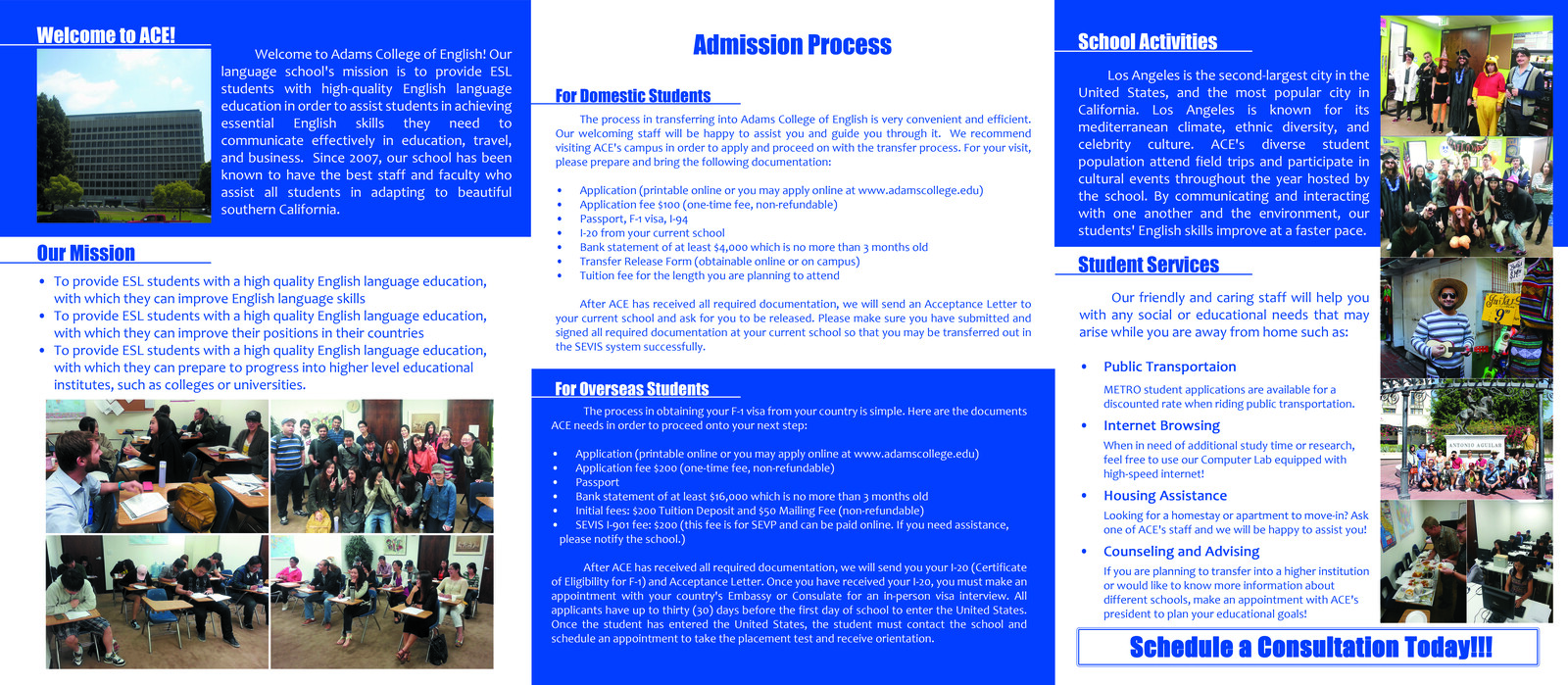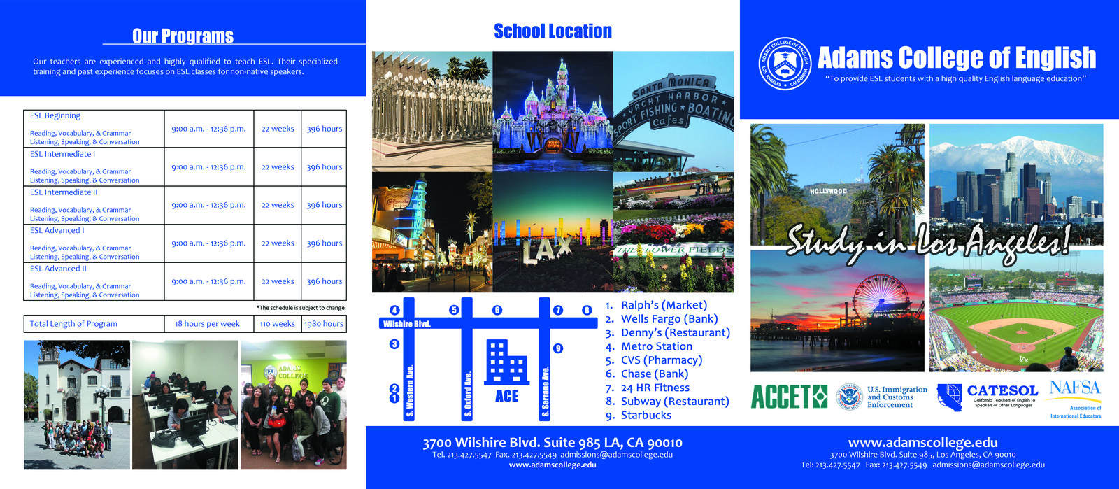 SEVIS및 ACCET에서 인증 받은 Los Angeles 소재 F-1 비자 I-20 발행하는 ESL 학교 Adams College of English의 한국인 담당 닥터박입니다. F-1 학생비자로 합법적으로 미국에서 최대 3년 영어 공부를 하시고 College나 University에 진학하실분, 공부하시면서 자격증 취득하시거나 NCLEX 시험 준비하실분, B1/B2, J1/J2 비자에서 F-1 학생비자로 신분 변경 필요하신분, College나 University에서 혹은 다른 ESL 학교에서 편입을 원하시는분 도와 드립니다.