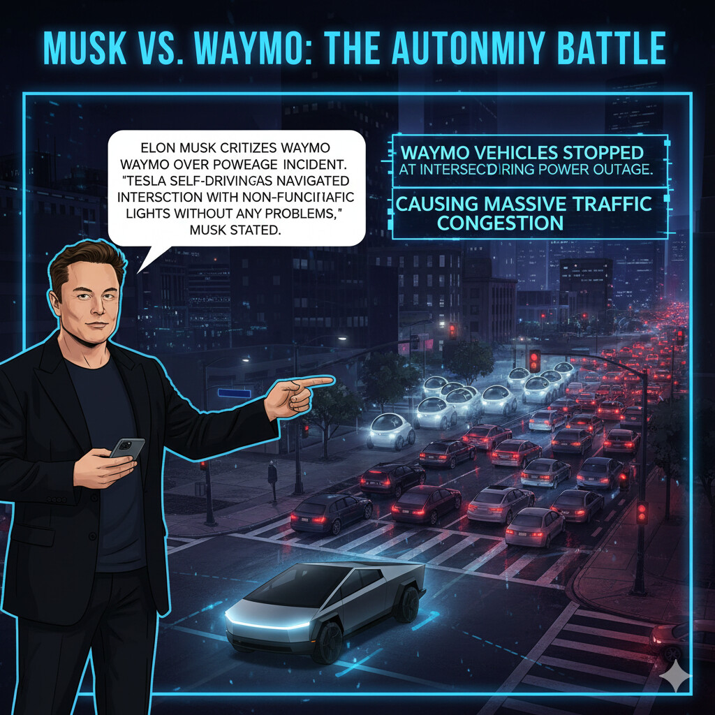 일론 머스크 테슬라 CEO가 지난 주말 샌프란시스코 대규모 정전 사태 당시 교차로에 멈춰 서서 교통 체증을 유발한 자율주행 택시 ‘웨이모(Waymo)’를 자신의 테슬라 로보택시에 비교하며 비판했다. 일론 머스크 CEO는 웨이모와 달리 테슬라의 기술이 대규모 정전 사태에…
