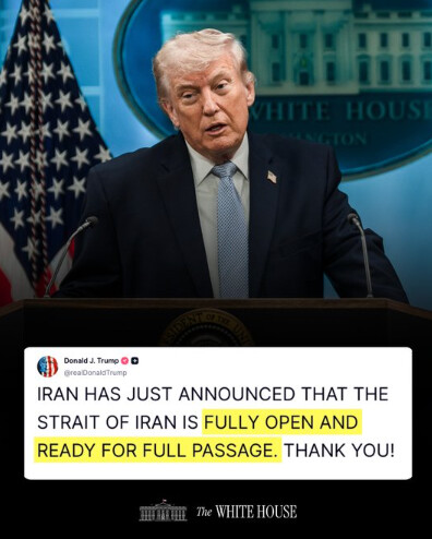 도널드 트럼프 대통령은 오늘(17일) 이란이 호르무즈 해협을 완전히 개방하겠다고 발표하자 곧바로 "감사하다"고 반응했다. 하지만, 이란과의 종전 협상이 완료될 때까지 미 해군의 대이란 해상봉쇄는 유지하겠다고 밝혔다. 트럼프 대통령은 오늘 트루스소셜에 "이란이 방금 이란 해협(STRAIT OF IRAN)이 완전히 열려 완전한 통행 준비가 됐다고 발표했다"며 "감사하다!"(THANK YOU!)고 적었다. 트럼프 대통령이 언급한 '이란 해협'은 호르무즈 해협을 지칭하는 것이다. 미국과 이란은 지난 7일 2주간의 '휴전 및 호르무즈 해협 개방'에 합의하고 종전 협상을 벌이기로 했지만, 이란은 이스라엘이 친이란 무장정파 헤즈볼라를 겨냥해 레바논에 대한 공격을 이어가자 무력행사를 위협하며 호르무즈 해협에서의 통제를 계속했다. 이에 트럼프 대통