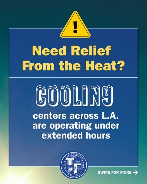 또 LA시는 카노가 팍 시티어 시민 센터와 노스 헐리웃 시니어 시민 센터, 피칸 레크리에이션 센터 등 샌퍼난도 밸리, 다운타운, 사우스 LA 주민과 반려 동물들이 더위를 피할 수 있는 시설 시간을 연장해 오전 9시부터 밤10시까지 운영합니다.