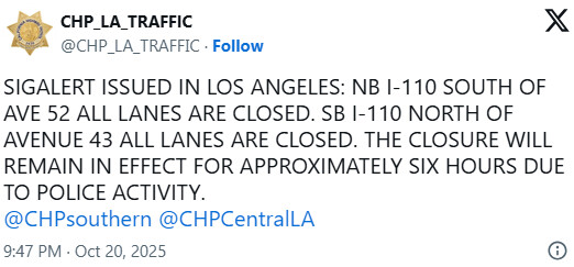 어젯밤(20일) LA 지역 110번 프리웨이에서 발생한 차량 절도 용의자 추격전이 비극적인 사고로 끝났다. LAPD에 따르면, 화물 밴을 몰고 경찰 추격에 도주하던 용의자는 어젯밤 9시 직전, 다저스타디움 북쪽 마운트 워싱턴 인근 이스트 43가(East Avenue 43) 근처 110번 프리웨이에서 …