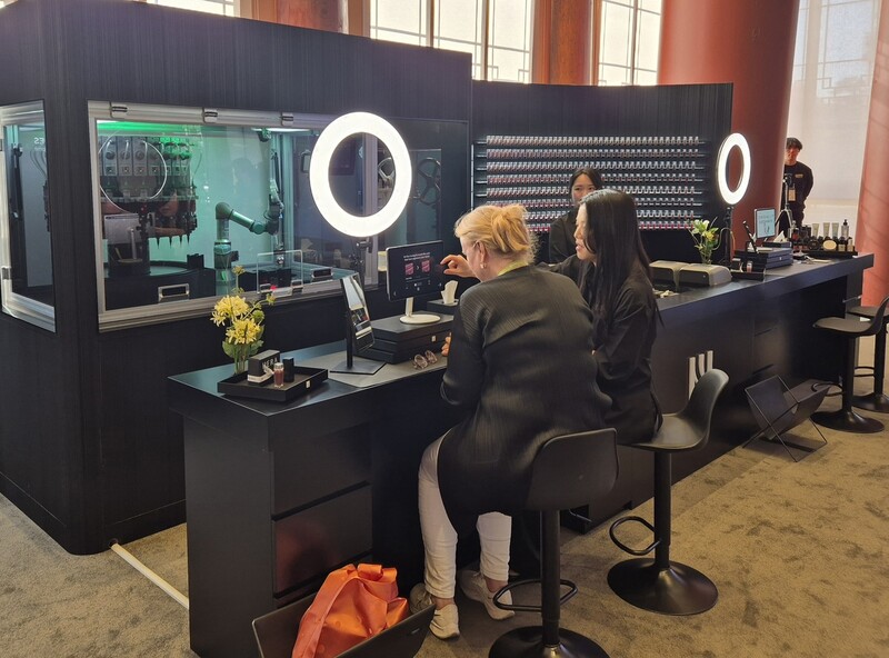 맞춤형 화장품 제조에 참여하는 로랑스 드 바르부아 씨