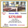 Korean BBQ 식당, $27만, 토런스